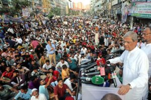 মির্জা ফখরুল বলেন, খুনি শেখ হাসিনা ১৫ বছর ধরে আমাদের নেতাকর্মীদের ওপর স্টিম রোলার চালিয়েছে, ভিন্ন ধর্মাবলম্বীদের অমানবিক নির্যাতন করেছে। আমাদের ৬০ লাখ মানুষের বিরুদ্ধে মিথ্যা মামলা দিয়েছে। শত শত নেতা কর্মীকে গুম করেছে। ২০২৪ সালের নির্বাচনের আগে মাত্র দুদিনে ২৮ হাজার নেতাকর্মীকে কারারুদ্ধ করেছিল। বিএনপির নেতাকর্মীরা গণতন্ত্র পুনরুদ্ধারের জন্য এতো প্রাণ দিয়েছে, যা ইতিহাসে বিরল। অনেক মা তার ছেলে হারিয়েছে, বোন তার ভাই হারিয়েছে।